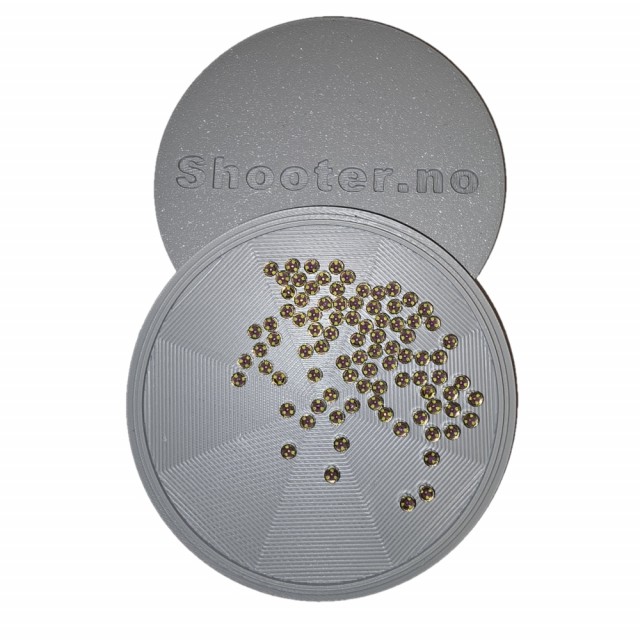 Tøm tennhettene oppi, rist forsiktig på boksen uten lokk og tennhettene vender seg rett vei. Trenger du dem opp ned for å mate tennhetterør, sett på lokket,snu boksen og vipps, alle ligger opp ned.