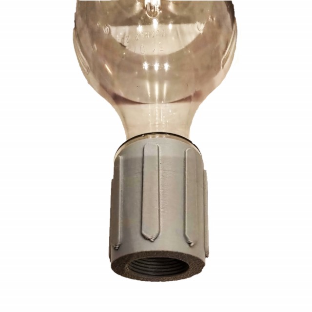 Adapter for å skru på riflepipen med løpsgjenger i ene halvdelen og gjenger for å feste brusflaske på andre. Slik kan du pusse av hjertens lyst, alle lapper, pussepropper og søl havner i den tomme brusflaska, GENIALT!
