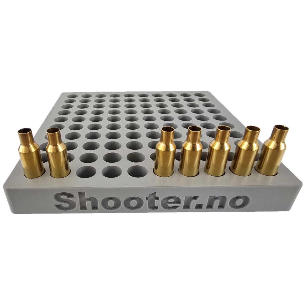 Solide brett i PLA plast, hull i bunnen for å få ut kruttsøl og beskytte tennehetter under lading.