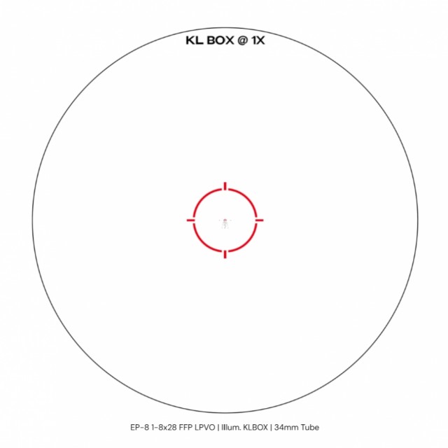 KL BOX (Known Length Box) retikkelet er tilpasset kjente mål og situasjoner, og gir mulighet for meget raske og presise skudd med BDC (Bullet Drop Compensation). I og med at dette siktet har SFP retikkel (Second Focal Plane) vil bullet drop compensation kun være korrekt på 6x forstørrelse